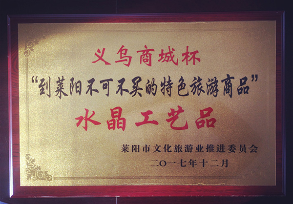 我公司生產(chǎn)的水晶工藝品獲得萊陽義烏商城杯“到萊陽不可不買的特色旅游商品”稱號(hào)